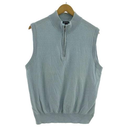 【中古】エディーバウアー EDDIE BAUER ベスト ニット ハイネック ハーフジップ プルオーバー リネン混 青系 L