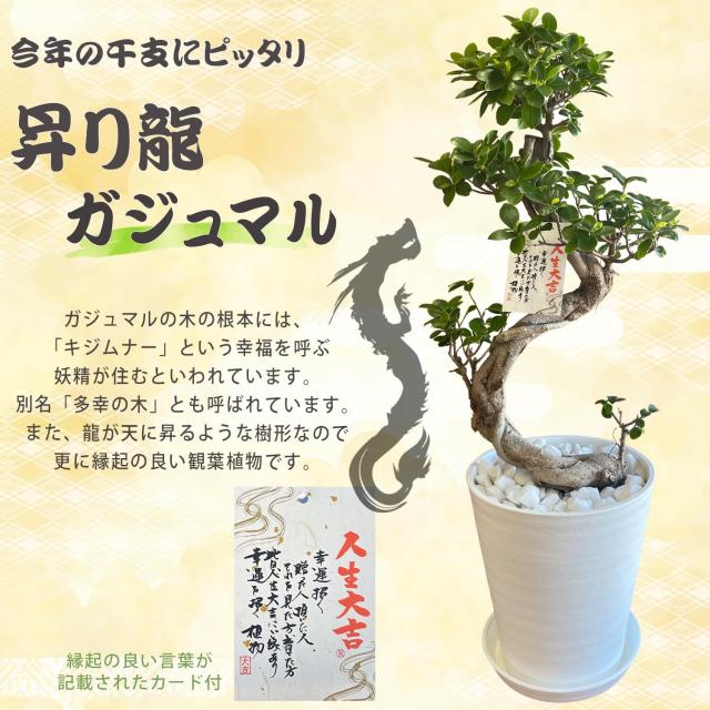 当日発送 14時まで 観葉植物 インテリア ガジュマル 昇り竜 昇り龍 曲がり 大型 ギフト 白 おしゃれ 観葉 植物 鉢植え 低木 木 陶器 多幸の木 お祝い 室内