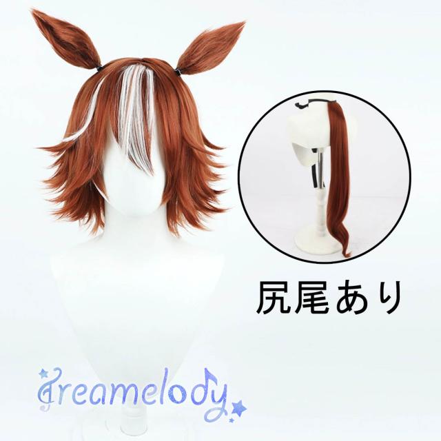 【dreamelody】ウマ娘 プリティーダービー バンブーメモリー ウイッグ 耐熱 かつら コスプレ イベント 耳付き しっぽ追加
