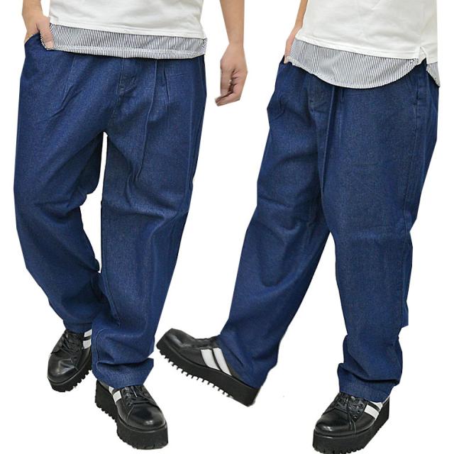 【閉店セール】ワイドデニムパンツ メンズ メンズ パンツ テーパードイージーパンツ 2152n213 メンズ バルーンパンツ メンズ ワイドパンツ メンズ ロング メンズ 秋 ワイド パンツ 秋 冬 ワイド パンツ 韓国 ファッション ブラック M L ブラック インディゴ