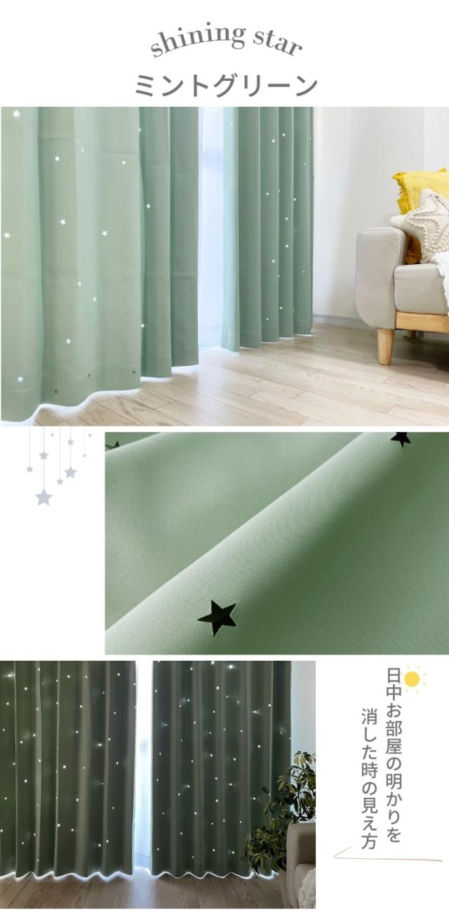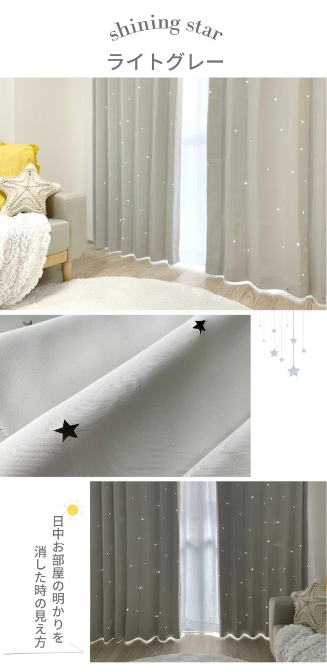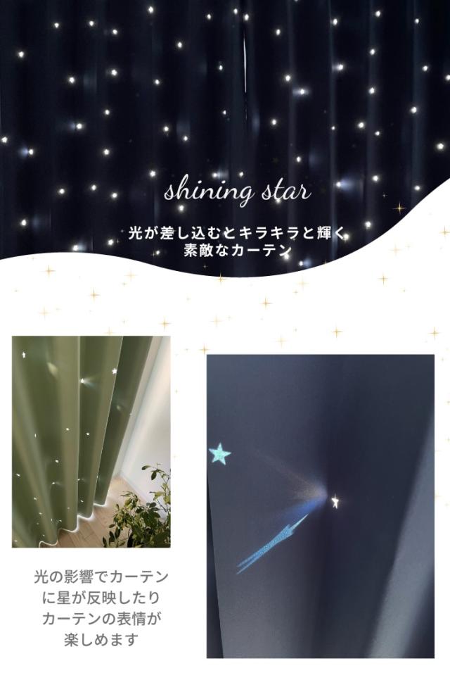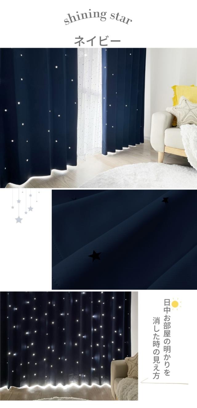 カーテン 遮光 星 星型 透かし シャイニング スター 遮光カーテン 幅100cm(2枚) 丈135 178 200cm かわいい おしゃれ キラキラ 子供部屋