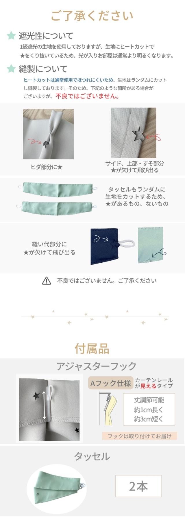 1級遮光生地を使用(星部分から光が入るためお部屋は暗くなりにくくなります。