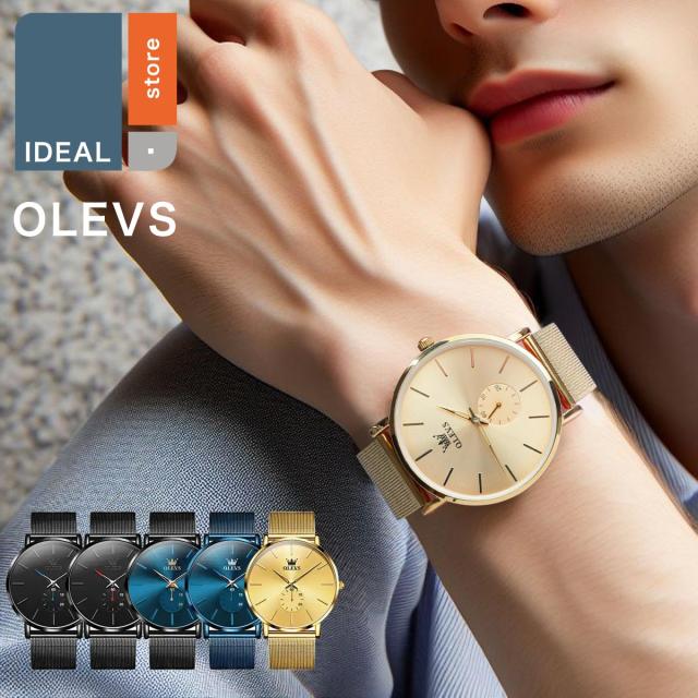 腕時計 メンズ 北欧デザイン メンズ腕時計 超薄型 ステンレス ミラネーゼ 時計 ブランド OLEVS オレブス かっこいい おしゃれ 30代 40代 50代 安い デザインウォッチ ブラック ゴールド ネイビー ギフト プレゼント