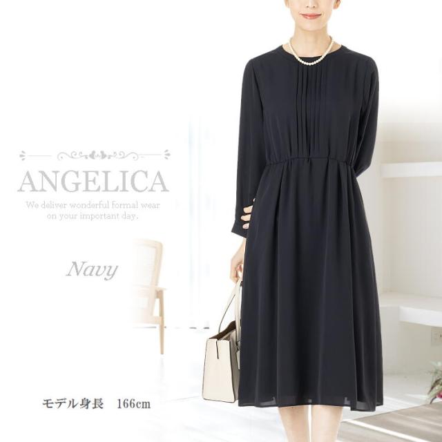 【ワンピース】ジョーゼット素材/かぶりタイプ/総裏地/袖口ボタン付き