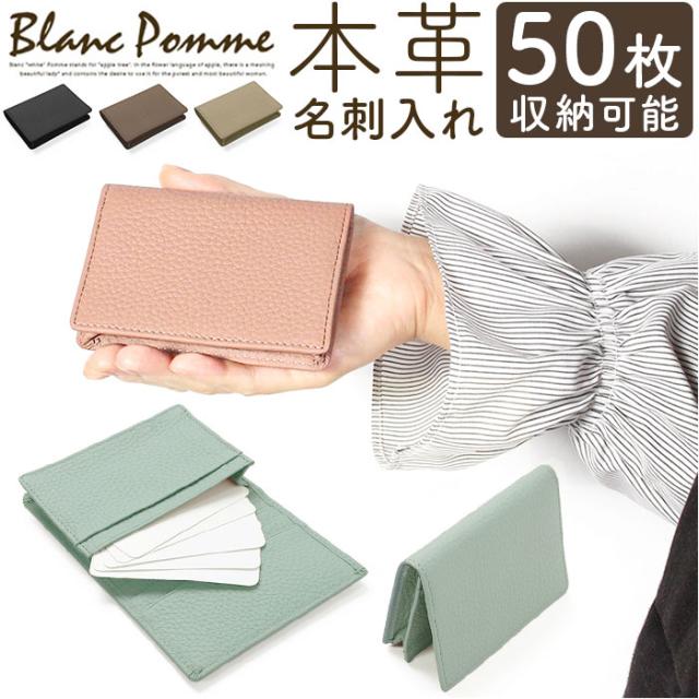 名刺入れ 本革 レディース 通販 カード入れ カードケース カード収納 名刺ケース 二つ折り ICカード 大人 女性 牛本革 かわいい 可愛い シンプル おしゃれ お洒落 新入社員 誕生日 就職祝い ギフト Blanc Pomme ブランポム