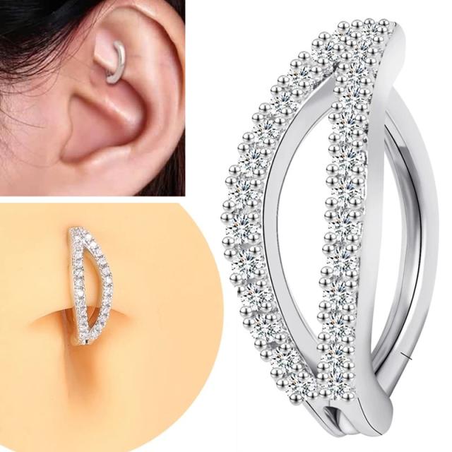 2連風のオーバル型のフレームにクリスタルのキュービックジルコニアをセットした14ゲージのオーバルクリッカー型ボディピアス。