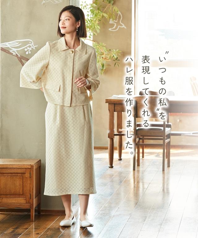 「私らしい」を表現してくれるハレ服。 ナチュラルさんらしい丁寧な装いの新しいフォーマルスタイルです。 〜【Neina(ネイナ)】forCeremonyFormal〜 ■こだわりポイント サークルレースが愛らしいスカートスーツ2点セットです ぽわんと広がったジャケットの袖口は手首を華奢に見せてくれます 存在感のある金ボタンでアクセントをプラス スカートはタイトすぎずフレアすぎず、ちょうどいいシルエットを目指しました ジャケット、スカートには小物を収納できるポケット付き クラシカルなブラックとナチュラルな