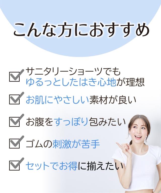 綿混ストレッチ 締め付けない深ばき丈サニタリーショーツ昼用3枚組(羽付ナプキン対応)