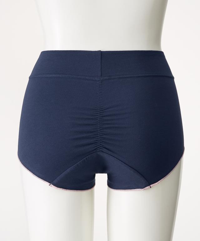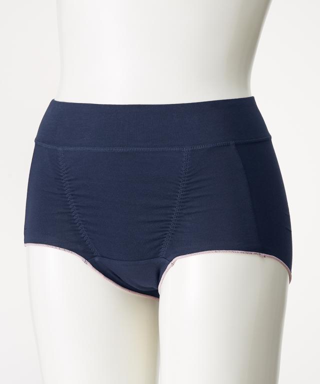 ■お客様のお声から改善しました 「お腹部分のゴムが肌にあたって不快」のお声から裏あて布を追加して、ゴムが直接あたらないよう改善しました! ■脚口はゴムなしで締め付けなし デリケートな時期こそやさしい仕様で快適に ■前に2本と、お尻のギャザーでナプキンのズレ防止 ■おへそまですっぽり(※)の深ばきタイプ はきこみ丈が深めでぽっこりお腹も包みこんで安心感のあるはき心地。 ※はきこみ丈には個人差があります ■ウエストらくちん ウエストは生地を折返してあり、ゴムが直接あたらない。 締めつけないかららくち