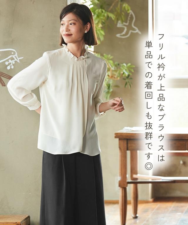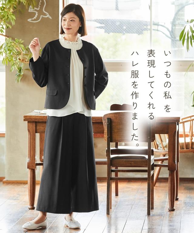 「私らしい」を表現してくれるハレ服。 ナチュラルさんらしい丁寧な装いの新しいフォーマルスタイルです。 〜【Neina(ネイナ)】forCeremonyFormal〜 ■こだわりポイント ジャケット、ブラウス、パンツの3点がセットになったパンツスーツです くるみボタン付きのジャケットでナチュラルテイストに フリル衿がワンポイントのブラウスは大人可愛さを表現します ブラウスのフロント部分にはギャザーが入っているのですっきり 前開きなので着脱もラクチンです! パンツはワイドシルエットなので足さばきも パン