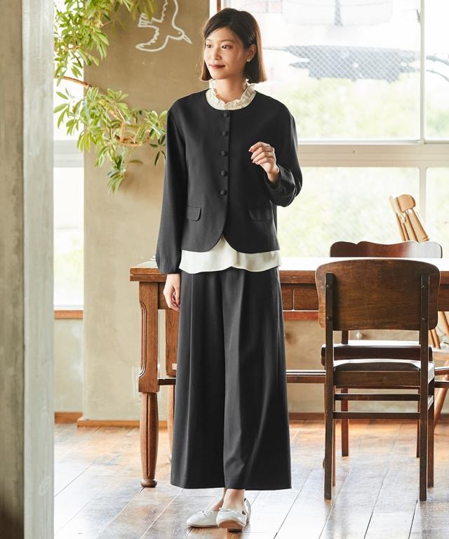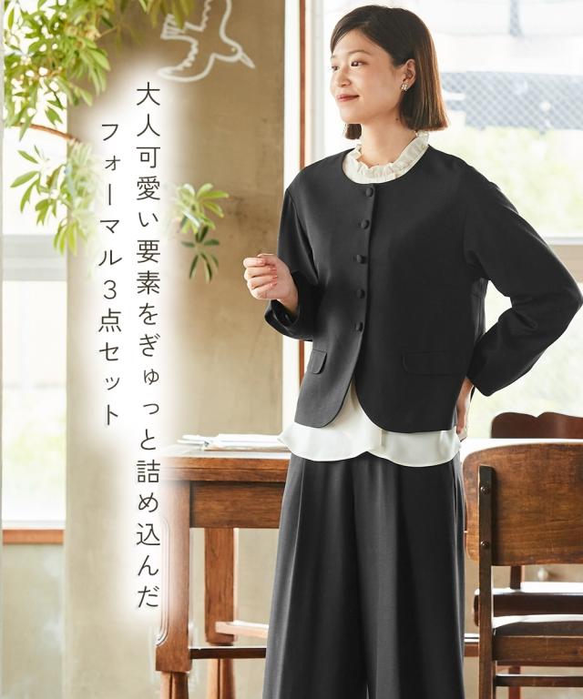 【入学式・卒業式・フォーマル】フリル衿ブラウスワイドパンツスーツ3点セット(ジャケット+ブラウス+パンツ)〔Neina〕 ニッセン nissen