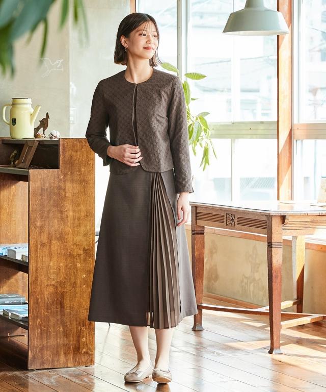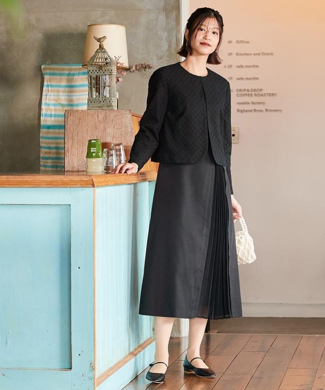 「私らしい」を表現してくれるハレ服。 ナチュラルさんらしい丁寧な装いの新しいフォーマルスタイルです。 〜【Neina(ネイナ)】forCeremonyFormal〜 ■こだわりポイント ジャケット・ワンピースがセットになったアンサンブルです 丸レースが柔らかい印象を与えるナチュラルジャケット ワンピースはアシメプリーツにすることでアクセントをプラス ワンピースは袖口ボタンでこなれ感も それぞれ単品使いもできるので、自分だけのコーデを楽しむことが出来ます ■体型カバーポイント からだの気になる部分を