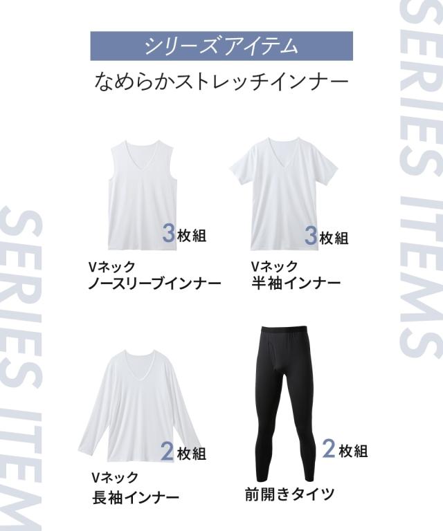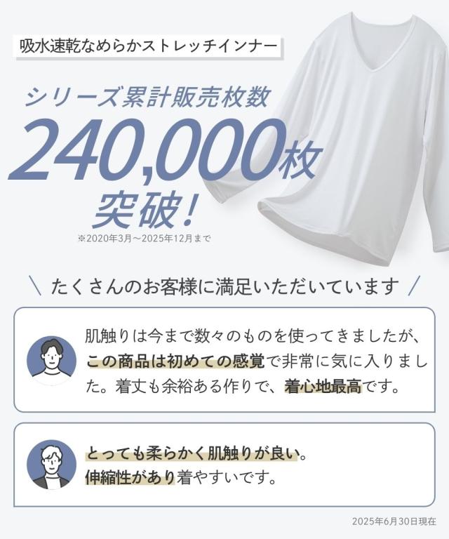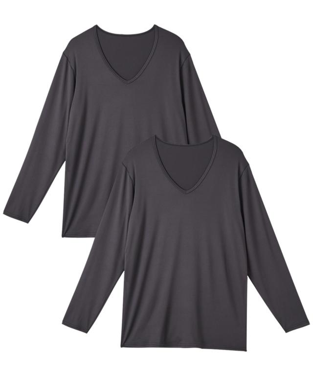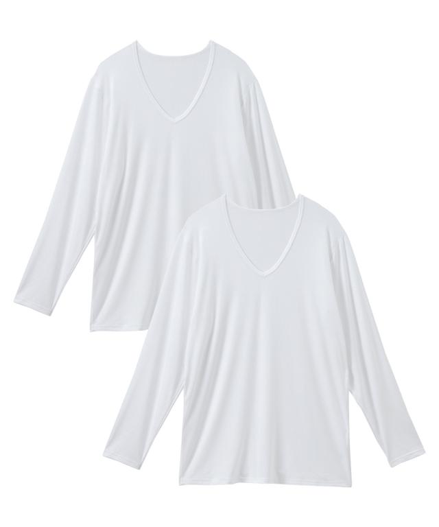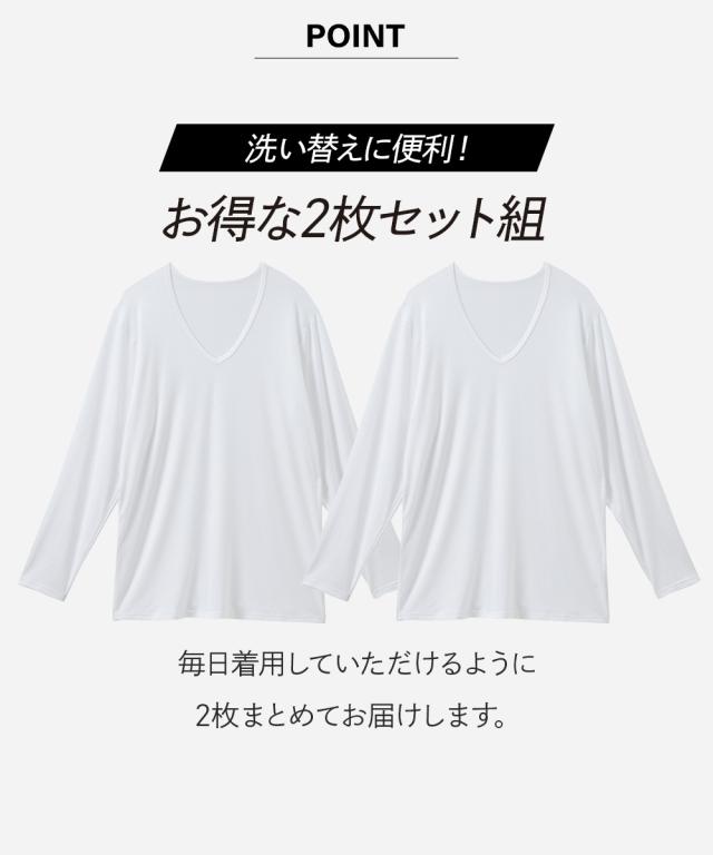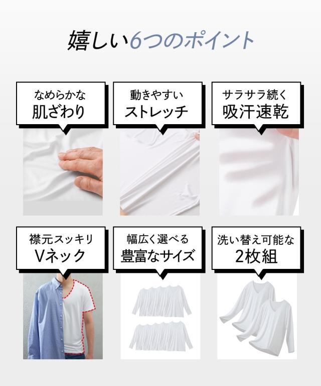 吸汗速乾なめらかストレッチ深Vネック長袖インナー2枚組