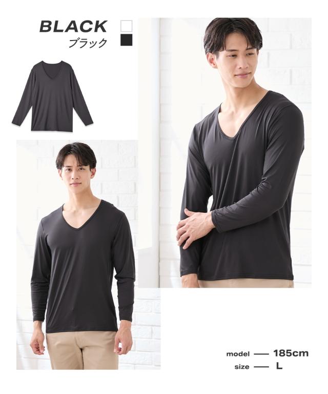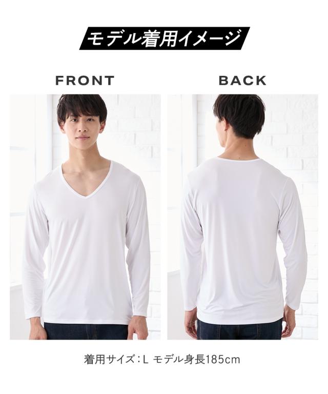 [keyword] メンズ ファッション 男性 長袖 ロングスリーブ おしゃれ Vネック ブイネック 吸汗速乾 吸水速乾 汗対策 乾きやすい 接触冷感 冷たい 涼感 涼しい ひんやり 夏 暑さ対策 ストレッチ 伸びる お買い得セット まとめ買い セット お得 アンダーウェア アンダーシャツ 春 秋 [comment] ●○●厚すぎず、薄すぎないオールシーズン対応できる程よい厚さのインナー●○● 季節を問わずに着用できるので、1セット持っていると重宝する万能アイテムです。 ビジネスシーンはもちろん、お出かけ等の普段着やスポーツやアウトドアや冠婚葬祭やパーティウエアの下にもご着用いただけます。 〜うれしい6つのポイント〜 ■Point1 なめらかな肌触り・・・手にすれば分かるしっとりとした気持ちのいい肌触りが、身体をやさしく包みこみます。 ■Point2 ストレッチ性抜群・・・体の動きにフィットするから快適な着ごこちです。 ■Point3 吸汗速乾でサラっとした着ごこち・・・汗を素早く吸収してサッと乾くから、汗をかいても嫌なベタつきを軽減します。 ■Point4 深Vネック仕様・・・通常よりも衿ぐりを深めのVネックに設定しているので、ワイシャツのボタンを開けてもチラ見えしにくいです。 ■Poin