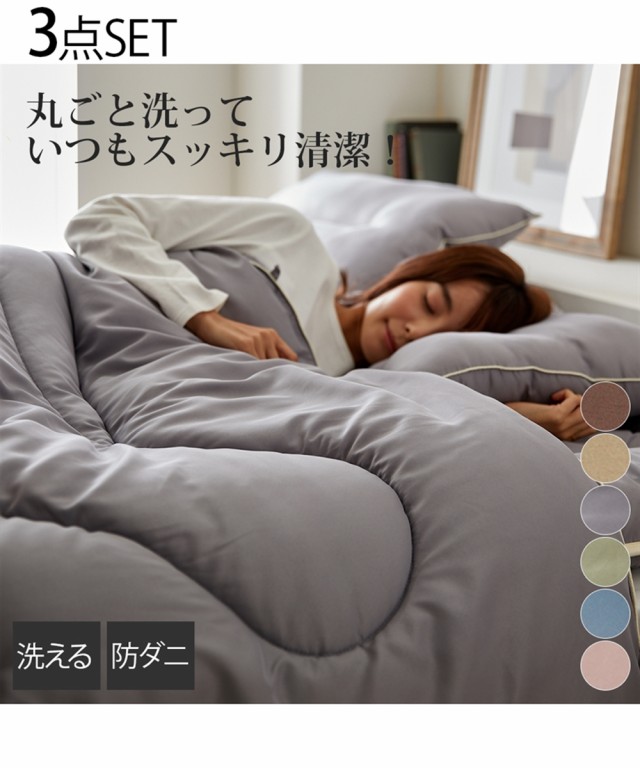 【単品配送】【お買い得!】洗える防ダニ!選べるカラー!布団3点セット