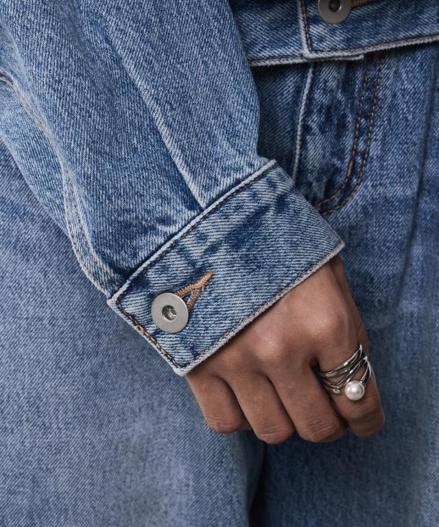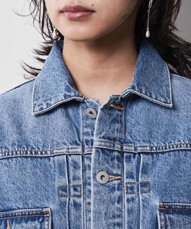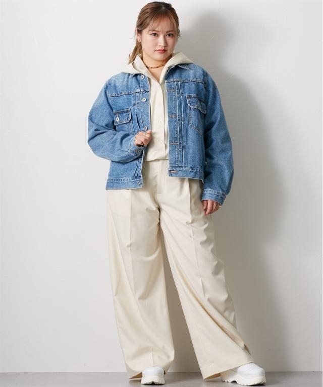 [keyword] 大きいサイズ レディース ぽっちゃり ふくよか プラスサイズ ラージ ファッション ゆったりサイズ ふつう丈 普通丈 おしゃれ 長袖 ロングスリーブ デニムジャケット デニジャケ Gジャン ジージャン ライトアウター 羽織 おでかけ 洗濯機洗いOK 洗濯 洗える マシンウォッシャブル 綿100% コットン100% 綿素材 綿 コットン 生地 デニム 素材 無地 無地調 柄 かわいい カジュアル 定番 着回し 春 [comment] サイズ感とヴィンテージ加工にこだわった大人のデニムジャケット ■デザイン 少し硬めのデニムに1点1点風合いの異なる加工感が加わった、コンパクトなデニムジャケット。 着ていくうちに柔らかさや風合いがかわり、自分だけにフィットするジャケットに。 ■素材 しっかりした綿100%のデニム素材を使用。 ■おすすめのスタイリング 羽織りとしてはもちろん、コンパクトなので前のボタンを留めてトップス感覚でお使いいただくのもおすすめ。 まだ寒いうちは、上からトレンチコートやテーラードジャケットを羽織ったり、暖かくなってきたらロゴTシャツやワンピースなどにさらりと合わせるだけでも今季っぽく仕上がる、一推しジャケットです。 別売の同素材のパンツと合わせてセットア