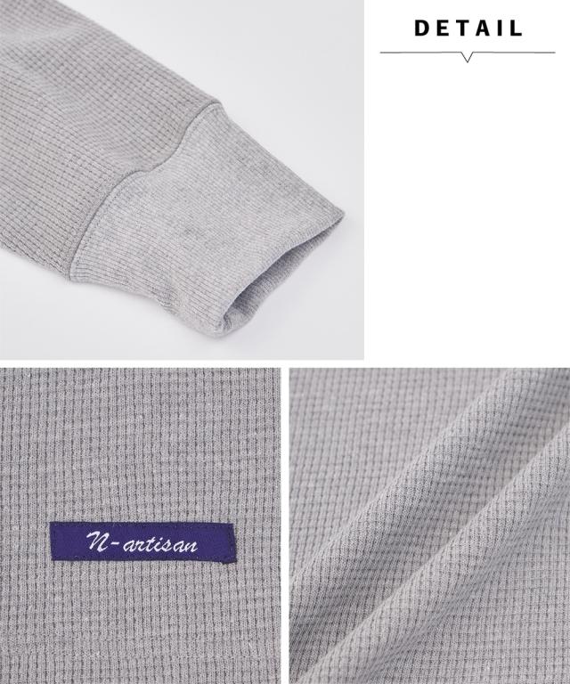 ヘビーウェイトワッフルヘンリーネック長袖Tシャツ【3L以上お腹ゆったり】 ニッセン nissen agesugi_sfa