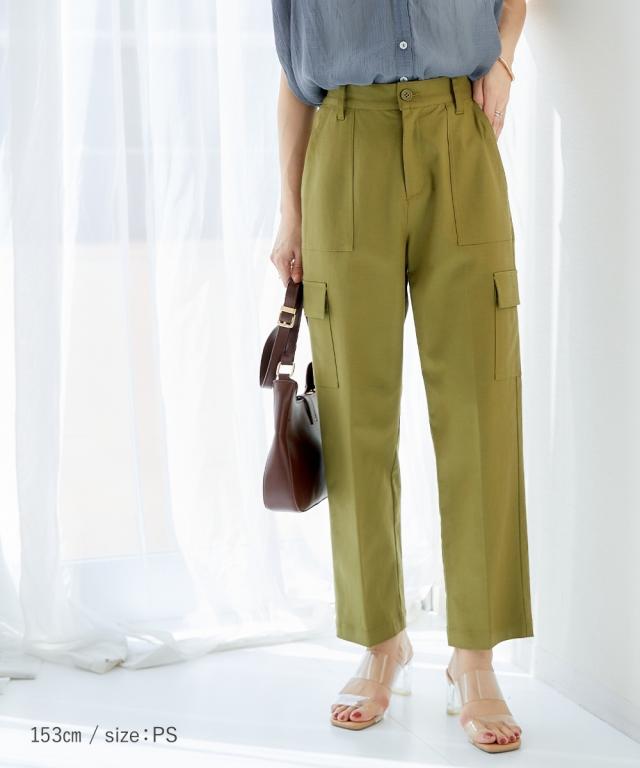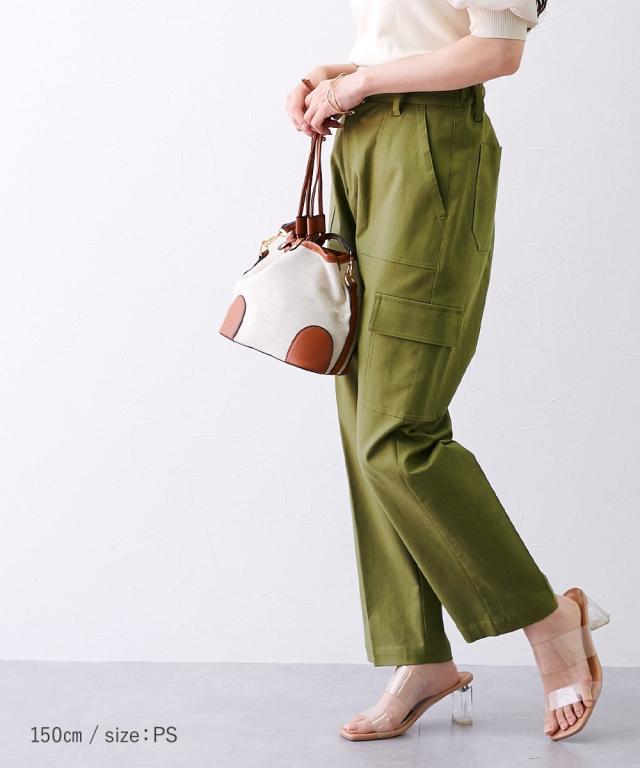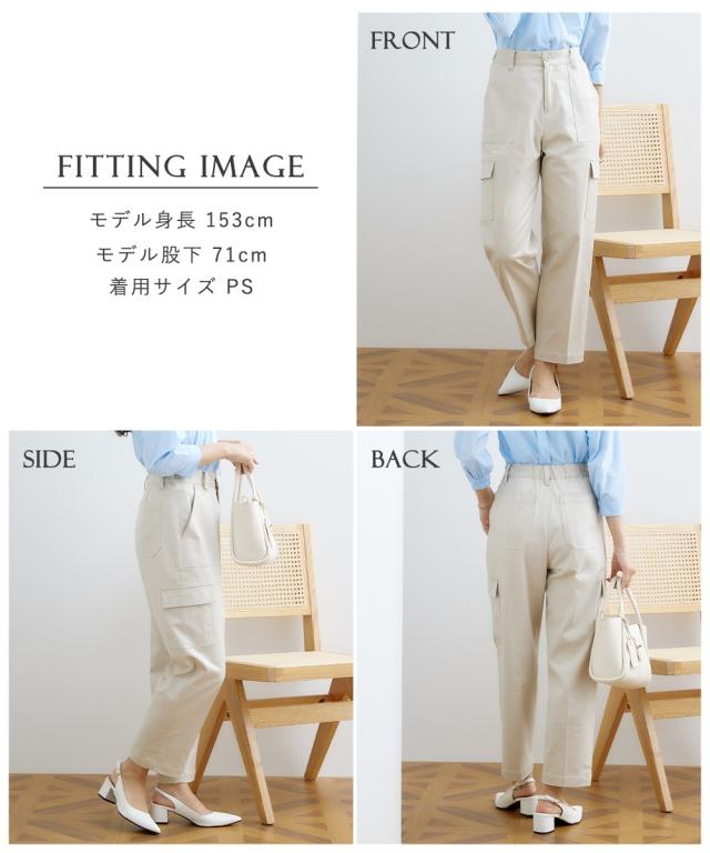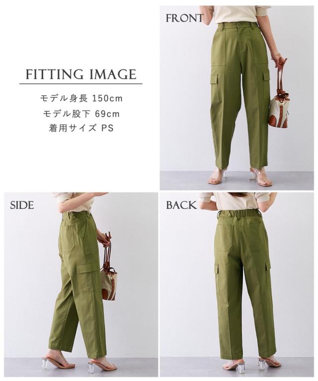 品質=再生繊維(セルロース)50%・綿45%・ポリウレタン5%透け感:透けにくい伸縮性:あり生地の厚み:普通光沢感:なし裏地:なしポケット:両サイドポケット2つ、後ろポケット2つ、カーゴポケット2つウエスト:フロントボタンファスナー、後ろウエストゴム、ベルトループ5本季節:春夏秋向きシルエット:普通 原産国:中国製 洗濯表示:洗濯機OK(ネット使用)