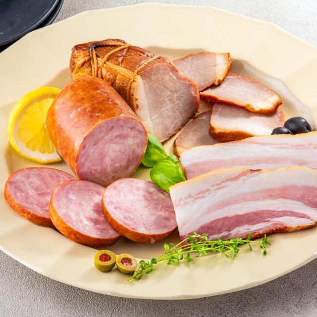 【数量・内容】焼豚200g、ベーコン150g、荒挽きボロニア250g