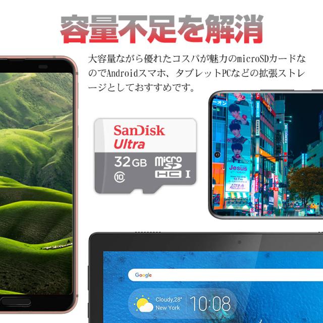 お買得10枚組 microSDカード マイクロSD 100MB/s microSDHC 32GB SanDisk Ultra UHS-1 CLASS10 海外パッケージ ネコポス送料無料