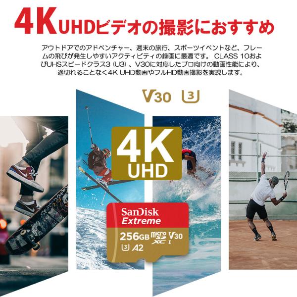 microSDXC 256GB SanDisk UHS-I U3 V30 4K A2対応 Class10 R:190MB/s W:130MB/s Nintendo Switch動作確認済 ゆうパケット送料無料