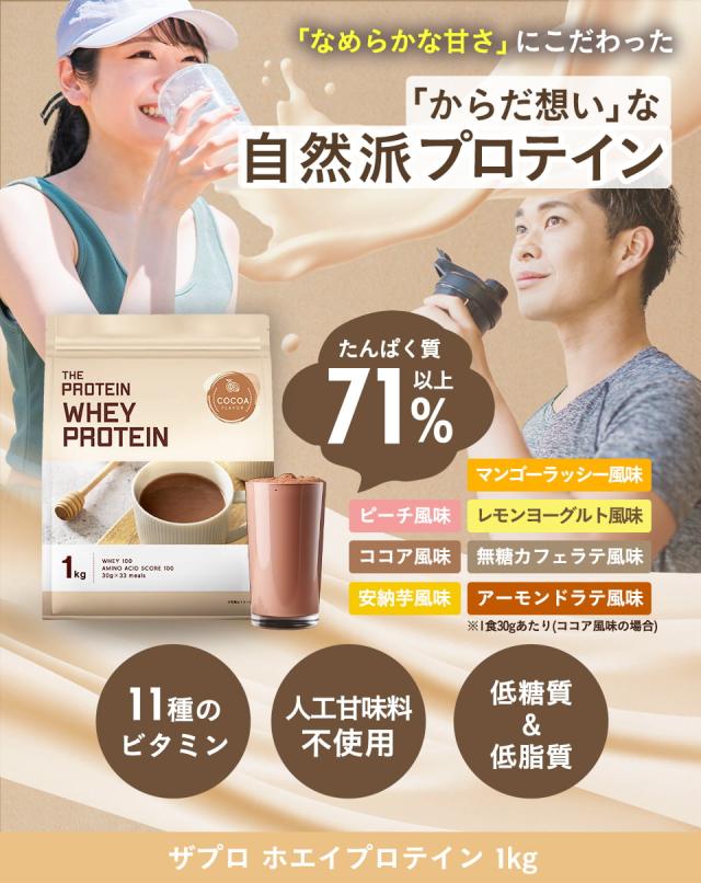 プロテイン 人工甘味料不使用 1kg ザプロ 武内製薬 ホエイプロテイン 女性 男性 プロテインダイエット 低脂質 低糖質 ビタミン 高タンパク ステビア 甘すぎない 美味しい 置き換えダイエット 朝食 栄養補給