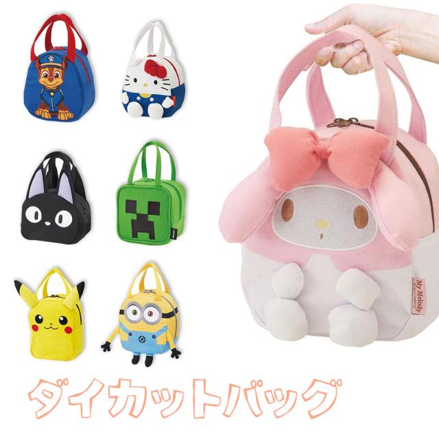 \今だけ10%OFF/ バッグ キッズ 手提げ ファスナー ダイカット ランチバッグ かわいい キッズ バッグ 子供用 ミニトート ミニバッグ お弁当かばん キャラクター ダイカットポーチ かわいい ミニオンズ パウパトロール マインクラフト キティ マイメロ KNBD1