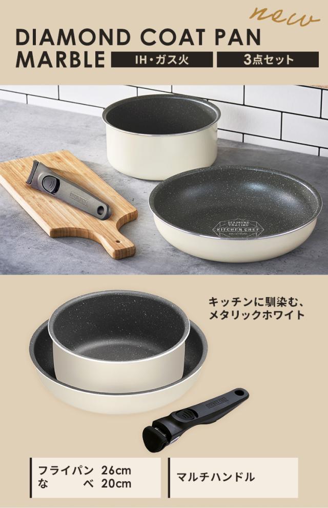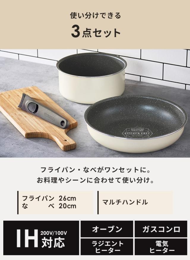 フライパン セット ih 白 取っ手が取れる おしゃれ かわいい 鍋 ih対応 ふっ素 コーティング 20cm 26cm ガス火 ダイヤモンドコートパン IH 3点セット アイボリー アイリスオーヤマ DCI-T3S 送料無料 プレゼント 母の日