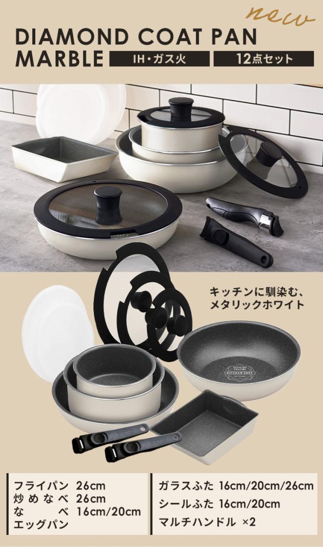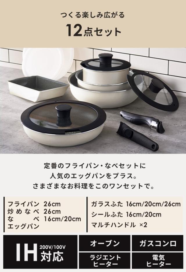フライパン セット ih 白 取っ手が取れる おしゃれ かわいい 鍋 ih対応 ふっ素 コーティング 16cm 20cm 26cm ガス火 ふた付き ガラス蓋 ダイヤモンドコートパン IH 12点セット アイボリー アイリスオーヤマ DCI-T12S 送料無料 プレゼント 母の日