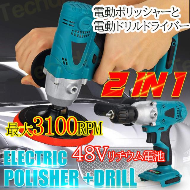 即納 電動ポリッシャー 電動ドリルドライバー 2in1 フラット研磨 波形スポンジ ウールのろうさら 車磨き 家庭用 艶出し 傷消し