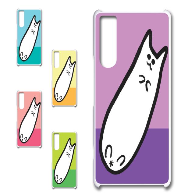 Xperia 5 IV ケース かわいい 猫 イラスト ネコ 白猫 ゆるかわいい 癒し ゆるめ ねこ プリントケース ハードケース シンプル 可愛い けーす 猫柄 シロネコ エクスペリア5iv xperia5iv えくすぺりあ5iv エクスペリア54 sog04 so54c