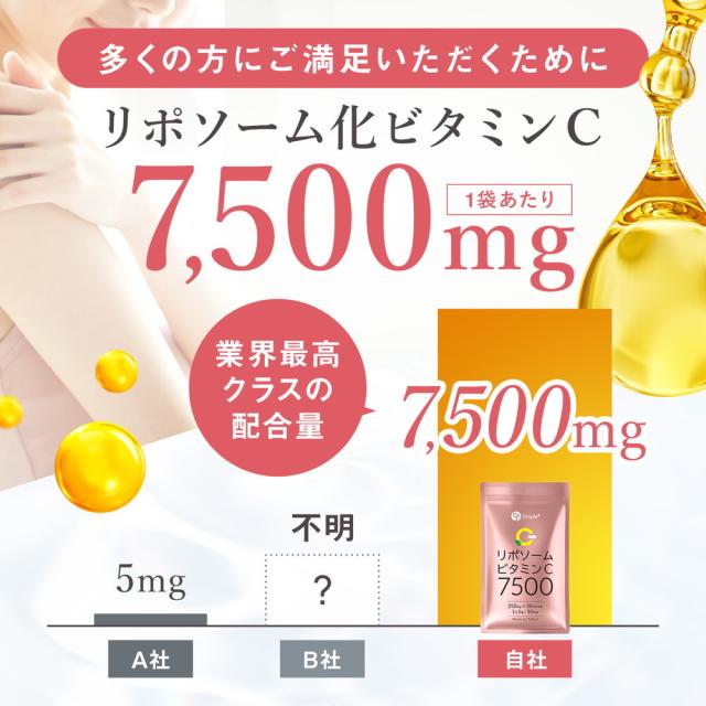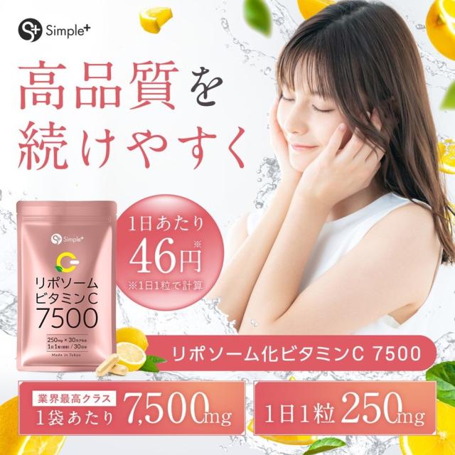 リポソーム ビタミンC サプリ 7500mg 30粒 耐酸性カプセル 日本製 ビタミン ビタミン剤 美容 サプリメント SIMPLE+