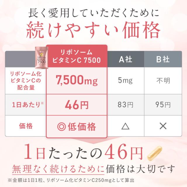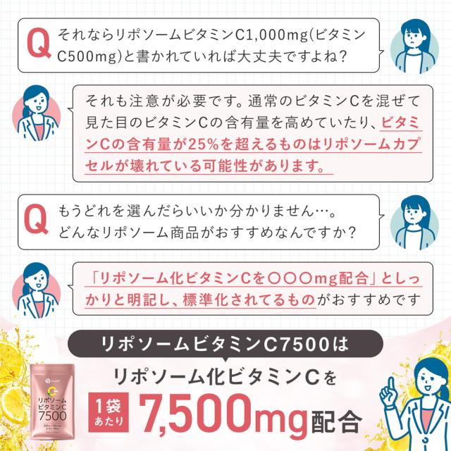 リポソームビタミンC7500は、今話題のリポソームビタミンCを配合したサプリメントです。
