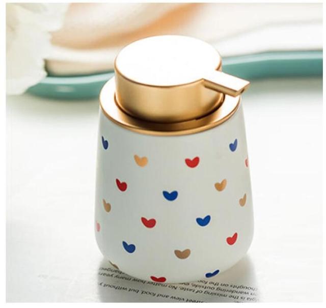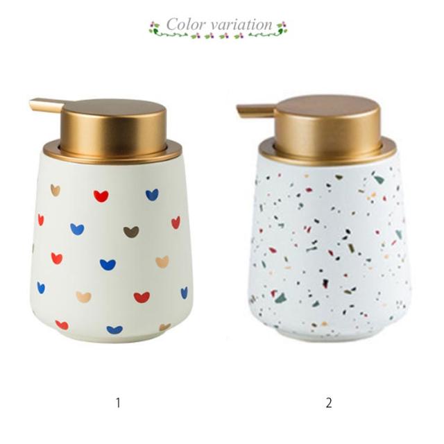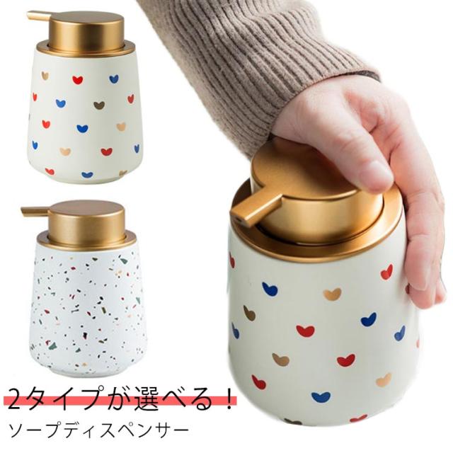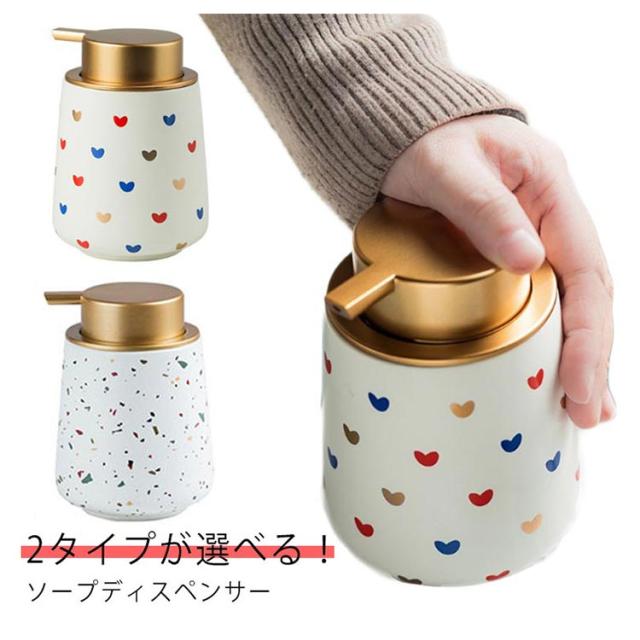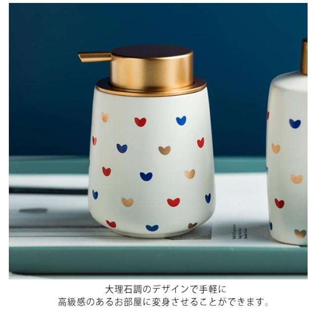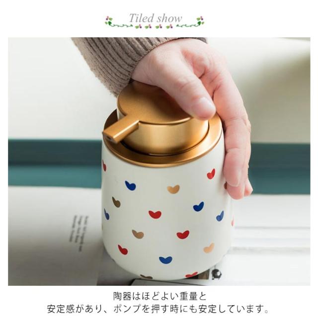 送料無料 ソープディスペンサー 陶器製 ハート柄 400ml ハンドソープ ボトル 洗剤 石鹸 ボトル 手動 ソープディスペンサー シャンプーボトル おしゃれ 詰め替え容器