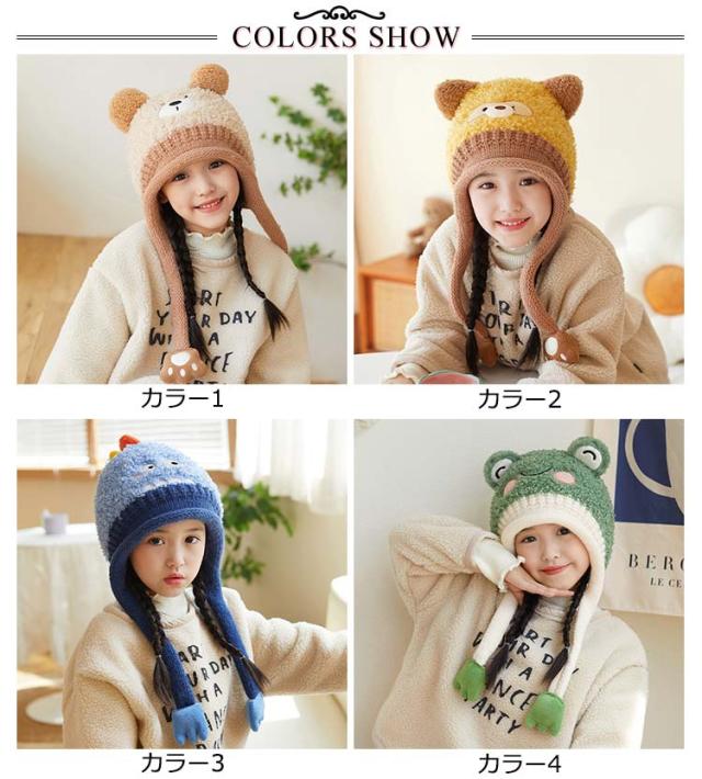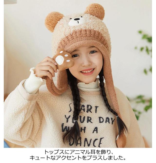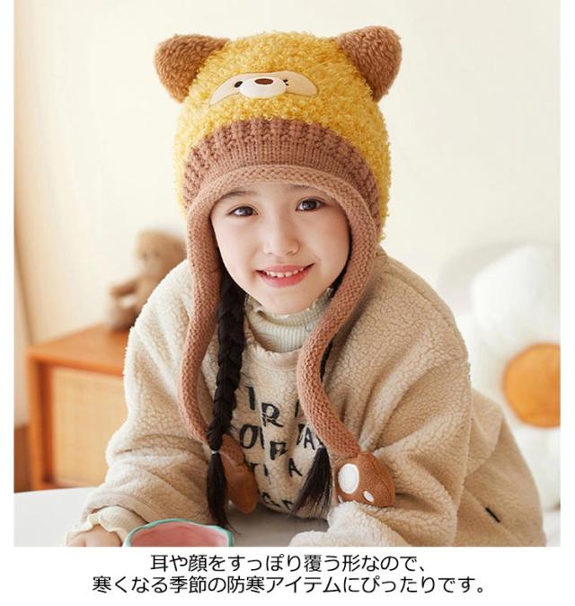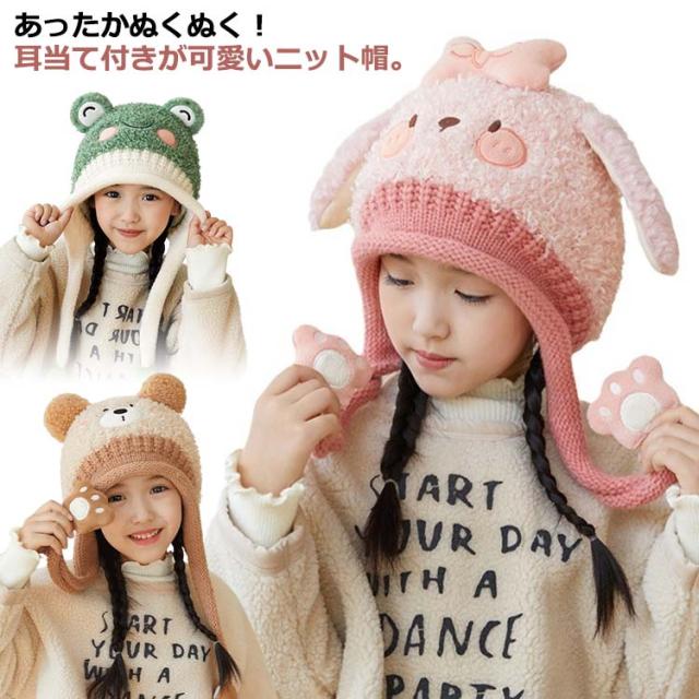 ボア 防寒帽子 カエル耳 帽子 裏起毛 ニット帽 クマ耳 あったか 耳当て 耳あて 子供用 ニットキャップ アニマル ベビー ウサギ耳 送料無料 あご紐 かわいい 子ども 男の子 女の子 暖かい 寒さ対策 キッズ 赤ちゃん お出かけ 耳保護付き 柔らかい かわいい 防風