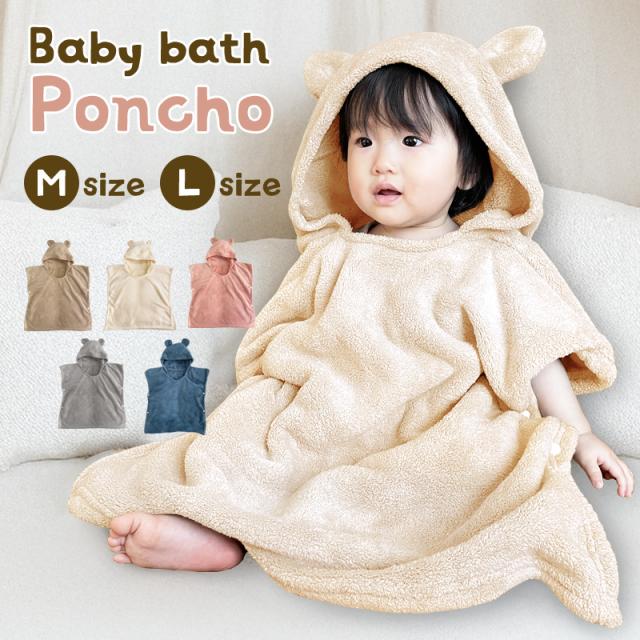SALE 2480円→1980円 ベビーバスローブ バスポンチョ ベビー バスタオル バスローブ キッズ ポンチョ キッズバスローブ フード付きバスタオル おくるみ 子供用 パジャマ 赤ちゃん くま耳 プール タオル ボタン付き クマ ベアー マイクロファイバー お風呂 速乾