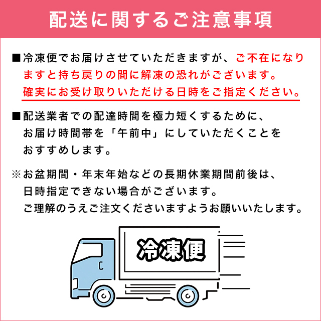 ・クール便でお届けする商品の特性上、置き配や宅配BOXへの配達はお受けできません。