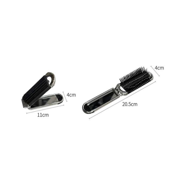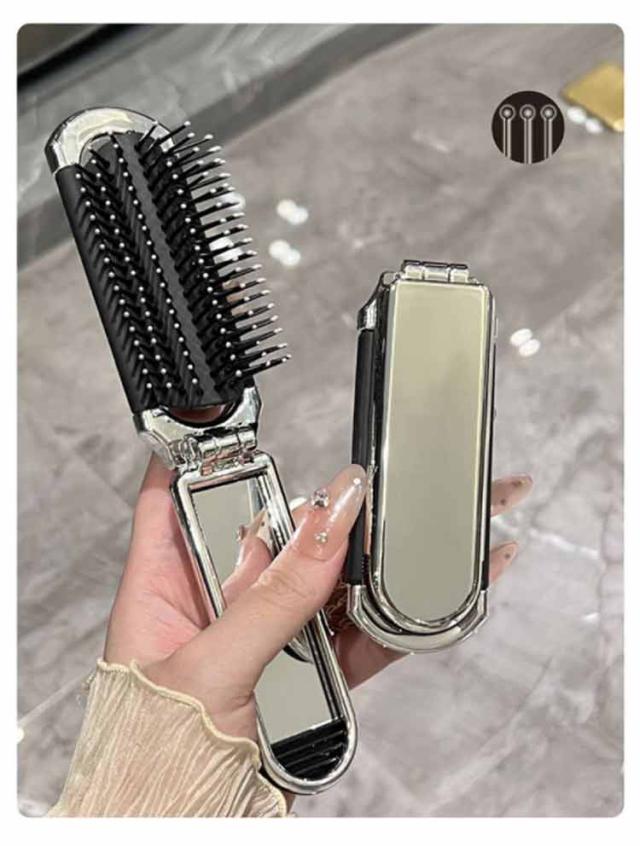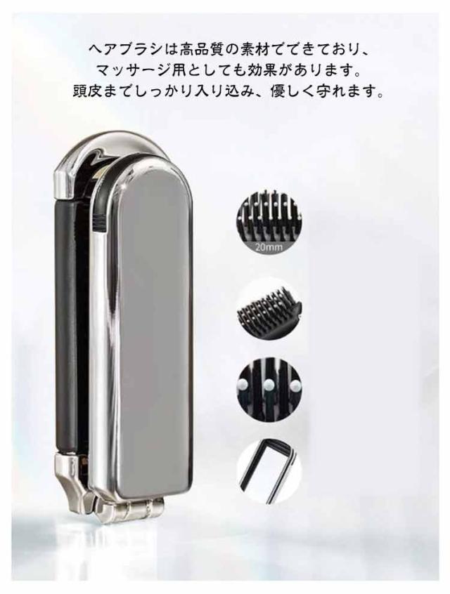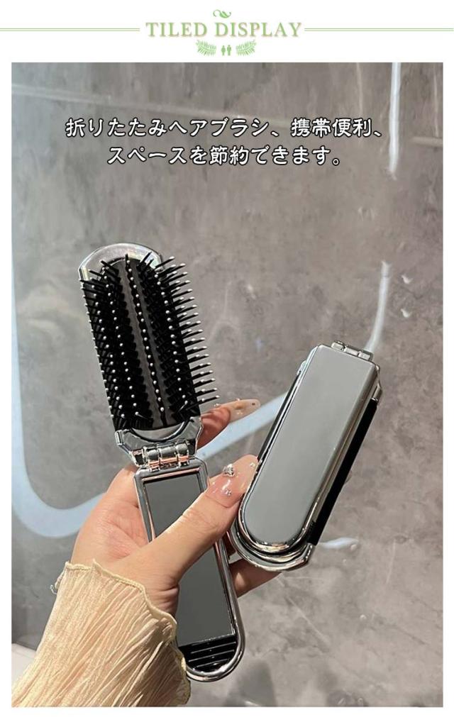 鏡付き 頭皮マッサージ 折りたたみヘアブラシ くし ミラー付き ミニ 折りたたみ 鏡付き ブラシ 持ち運び 携帯便利 軽量 櫛 くし 旅行 外出 通勤 通学 入院用 出張 子供も使える ハンディブラシ シルバー 可愛い