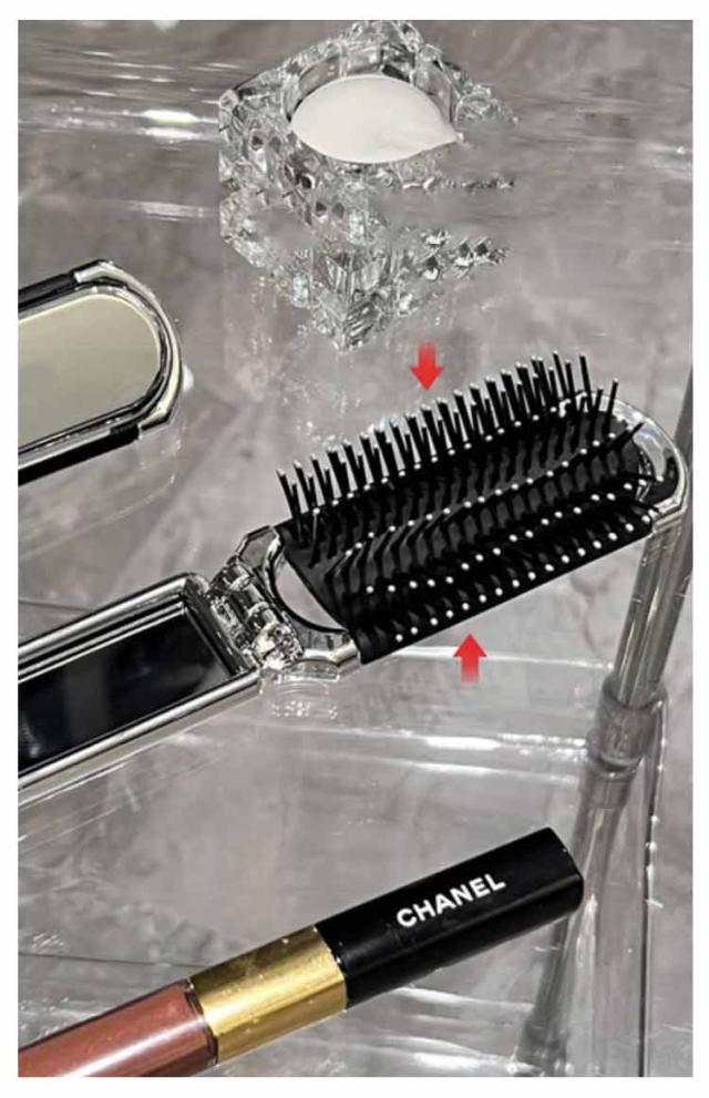 - コンパクトで化粧ポーチに充分収まります。裏から押したらニョキっとブラシ部が簡単に出てきます。とき具合もしっかりしてるし、柔らかくちょうどいいです。こんな携帯用ヘアブラシを探してました。
