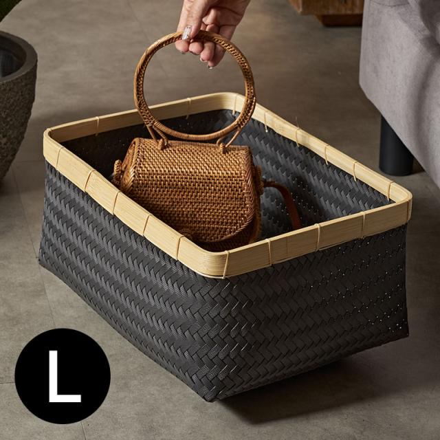 バスケット Lサイズ かご 27.6L バンブー 竹 プラスチック 約 W 40cm D 30cm H 23cm ランドリーバスケット 耐水性 レクタングル かごバスケット 収納 収納バスケット 洗濯物入れ 荷物入れ かばん入れ 小物入れ おしゃれ 北欧 雑貨 インテリア リゾート アジアン [l-14065]