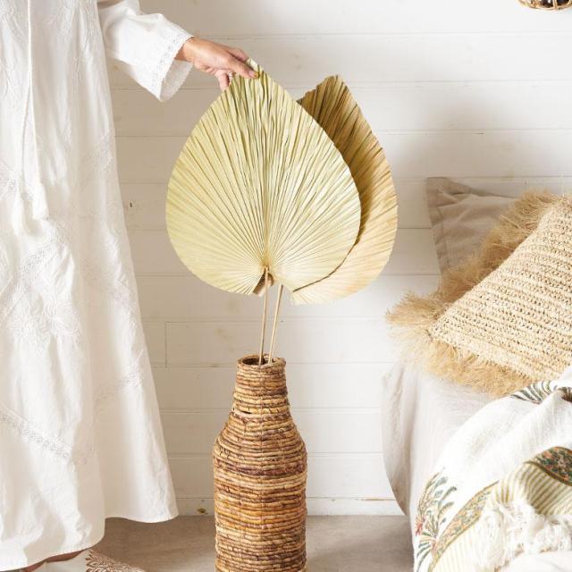 大きな天然ヤシの葉っぱをスペードのような形に切り取ったドライリーフ。お部屋に置くだけで、まるで南国リゾートのようなエキゾチックな雰囲気に。高さ約90cmと迫力あるサイズ感はインテリアのアクセントになります。