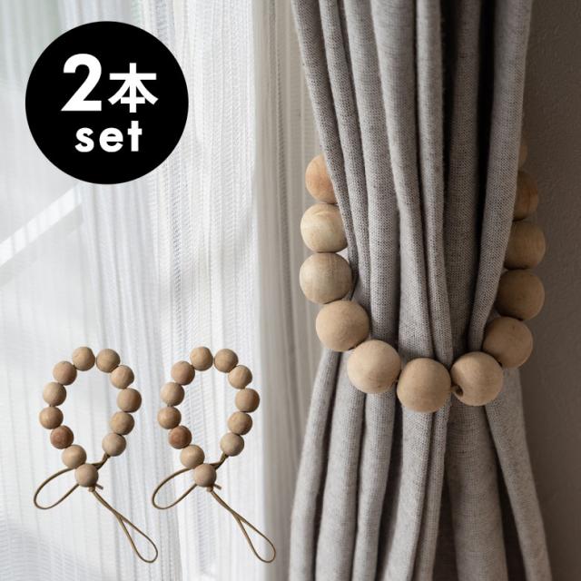 カーテンタッセル ウッドボール カーテン留め 2本セット ウッド 木製 天然木 合皮 フェイクレザー 約 W50cm D2.5cm H2.5cm カーテン 34620
