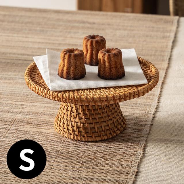 ケーキスタンド ラタン 籐 約 W 16cm D 16cm H 7cm Sサイズ ナチュラル ケーキ お菓子 トレイ トレー コンポート 脚付き皿 51346
