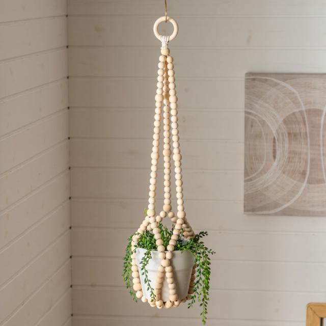 プラントハンガー ハンギングプランター ウッドビーズ 木製 約 W 10cm D 10cm H 70cm ナチュラル 吊り下げ 壁掛け 観葉植物 グリーン フラワー 花 多肉植物 デコレーション ディスプレイ リビング 玄関 リゾート おしゃれ 北欧 インテリア 雑貨 アジアン [94764]