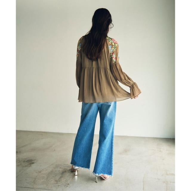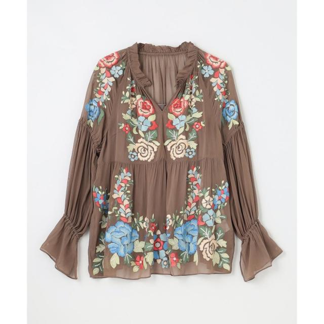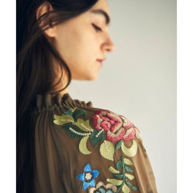 薄手で落ち感の綺麗なジョーゼット素材に、フラワー刺繍を大胆且つ繊細に施したドラマティックな一枚です。