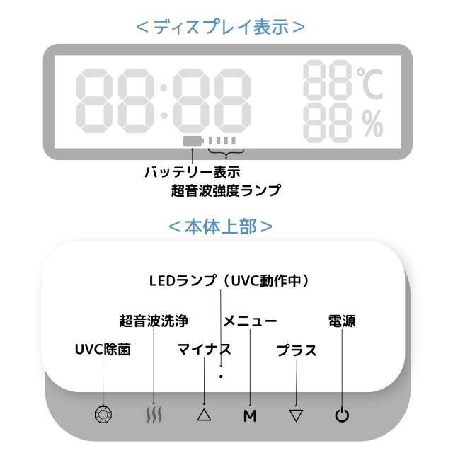 UVC洗浄・超音波洗浄機 で、デジタル時計・温度・湿度表示も搭載!
