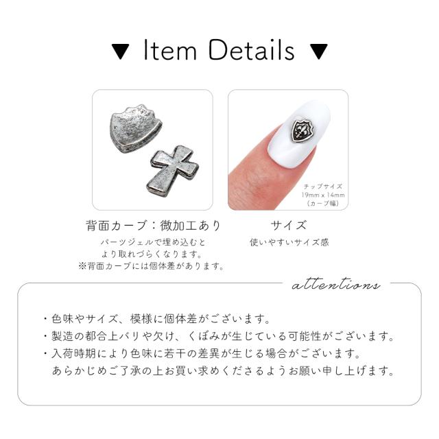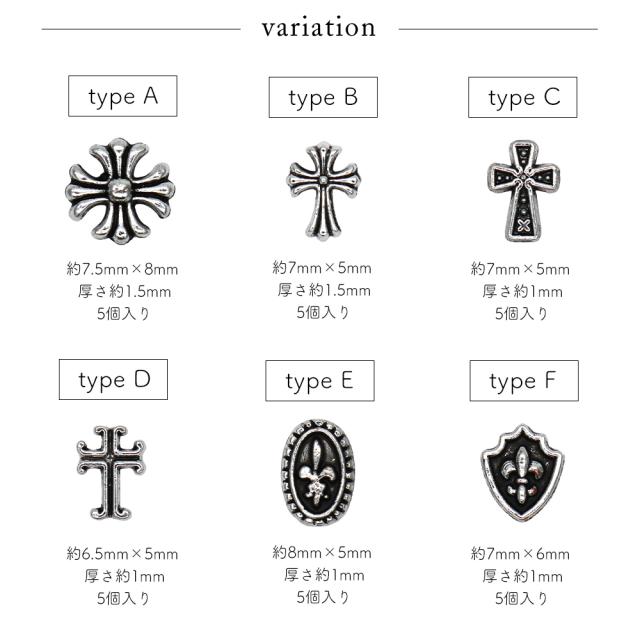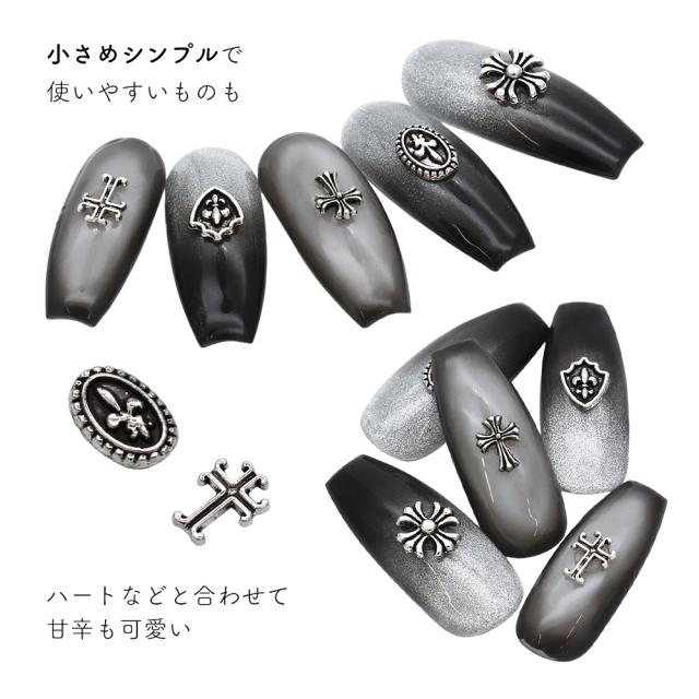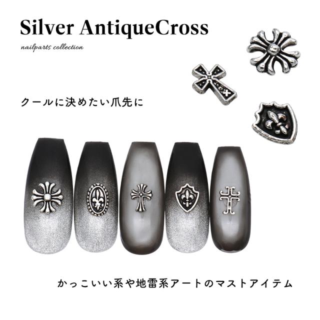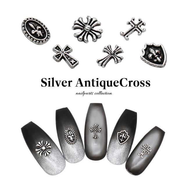 ネイルパーツ シルバーアンティーククロスパーツ 全6種 5個入