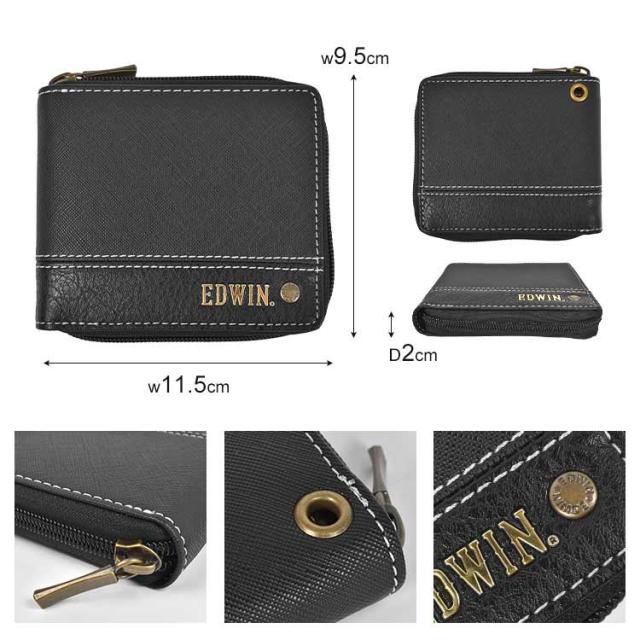 二つ折り財布 EDWIN エドウィン メンズ ラウンドファスナー ブランド 小銭入れあり お札入れ カード入れ 中学生 高校生 ギフト プレゼント 薄い 薄型 ショートウォレット サイフ スリム レザー ビジネス 通勤 通学 男子 新社会人 コンパクト ミニ財布 かっこいい 黒 紺 合皮