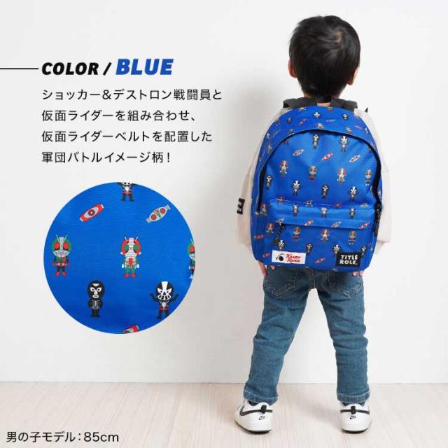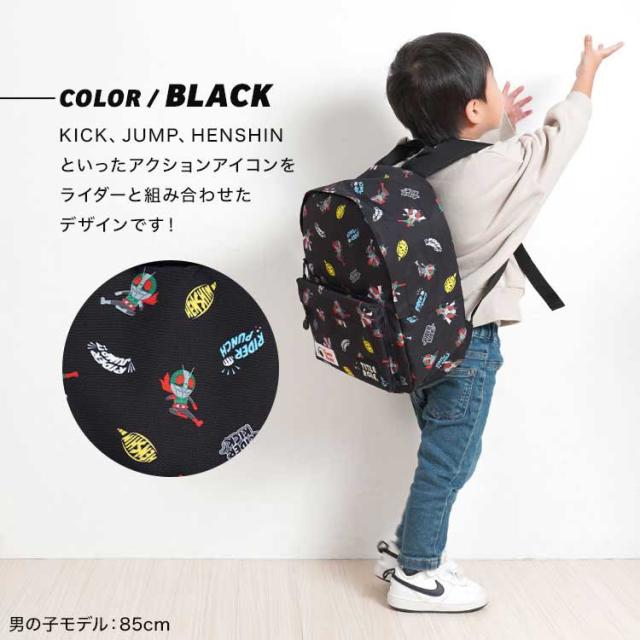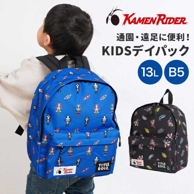 リュック キッズ 仮面ライダー 男の子 子供 保育園 幼稚園 小学生 通園 通学 お泊り保育 バッグ デイパック リュックサック 13L 大容量 ネームタグ ハーネス チェストベルト ずれ防止 ブラック ブルー キャラクター 初代 1号 2号 V3 ショッカー 子ども 遠足 塾 入園 入学祝い