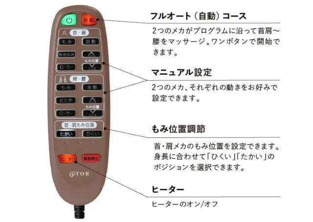 コントローラーで、自動コースの選択、マニュアル設定やもみ位置の調節などが簡単に行えます。コントローラーで簡単操作